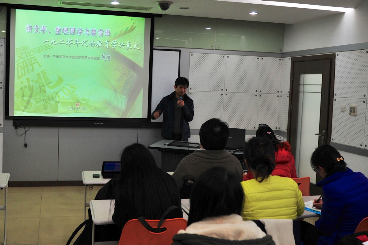 2014年3月13日下午,华东师范大学教育高等研究院副院长周勇教授在研究院做了一期题为“新文学、整理国故与教育学——九二零年代的教育学兴衰史”的学术沙龙,沙龙由毛毅静老师主持。此次沙龙意欲实验跨学科视野的民国教育学史专题研究,具体是将五四以来的“教育学”兴衰史置于当时主流学术文化生产背景中加以考察,从主流学术文化生产的角度,探讨为何“教育学”兴起之后没几年便陷入了“空前厄运”,揭示各路“教育学人”在“厄运”降临之际如何另辟进路,并分析其学术文化成败得失。