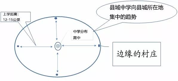 由于中学生年龄较长,可以脱离家庭的监护而寄宿在校,因此中学阶段就会出现生源向县城的大规模流动,形成了县城里学校布点大规模增加、学校大型化等一系列现象,高中基本集中在县城,初中也出现了向县城收缩与退却的趋势。这样的现实空间分布状态人为难以抵制。
