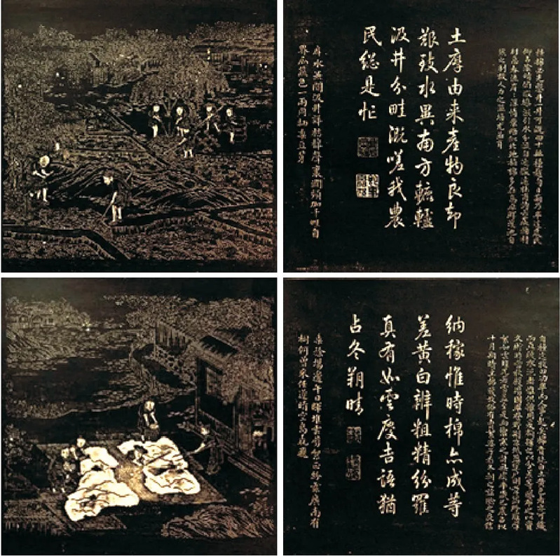 图 9 《御题棉花图》刻石拓本之灌溉图、拣晒图